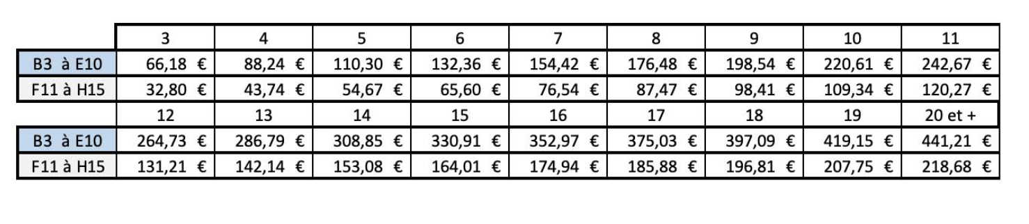 Année [3-20] × 2,865 × 7,70 € - Pour les classes d’emploi F11 à H16 :