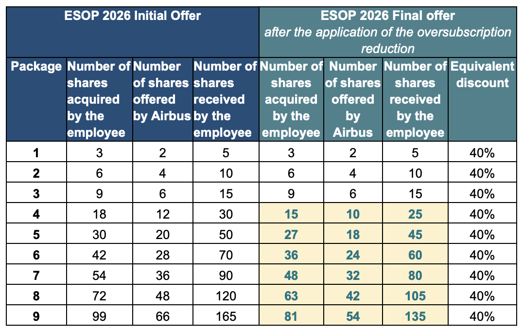 ESOP AIRBUS 2026 : résultats et ajustement des formules